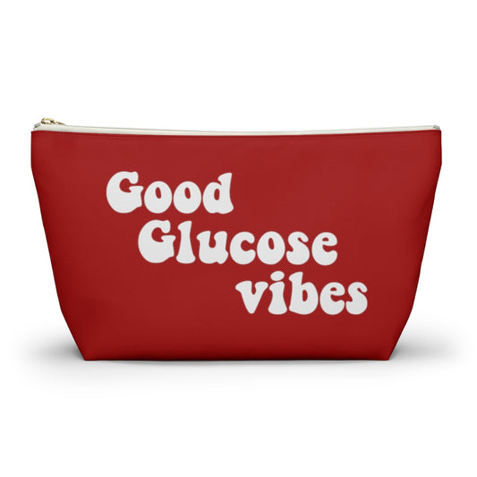 Good Glucose Vibes, Diabetes Supply Bag Diabetic Type 1 One, Type 2 Stuff Funny Awareness Travel Accessory Red Zipper Pouch w T-bottom Gift