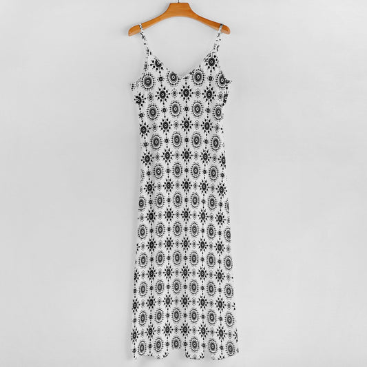 Black White Boho Maxi Dress, Long Spaghetti Straps Women Sleeveless Casual Cute Designer Elegant Plus Size Cocktail Party Summer Designer