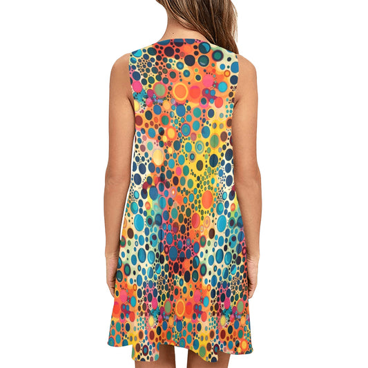 Retro Funky Tank Dress Women Pockets, Dot Art Psychedelic Colorful 70s 1970s Vintage Print Summer Sleeveless Mini Short Festivals Outfits