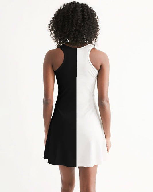 Half Black and White Women Halter Dress, Two Color Block Split 2 Tone Combo Summer Sleeveless Cocktail Mini Handmade Designer