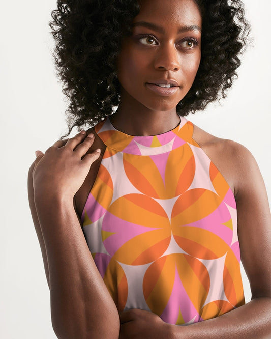 Groovy 70s Retro Women's Halter Dress, Vintage Funky 1970s Summer Beach Sleeveless Cocktail Mini Cute Handmade Designer Dress