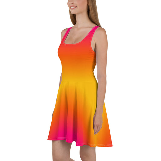 Ombre Skater Dress, Pink Orange Gradient Tie Dye Print Summer Sleeveless Mini Short Cute Cocktail Party Sexy Women