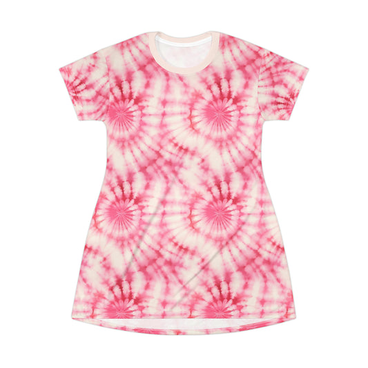 Pink Tie Dye Tshirt Dress, Women Summer Beach Cute Festival Party Casual Designer Short Sleeve Girls Ladies Cover Up Tee