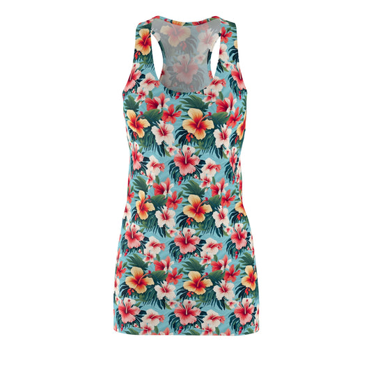 Hawaiian Flowers Women Dress, Tropical Floral Beach Cover Up Summer Sleeveless Cocktail Mini Cute Handmade Designer Racerback Tank
