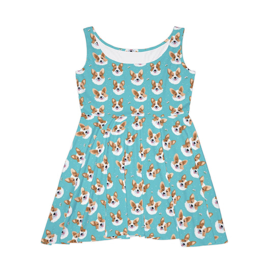 Welsh Corgi Dog Skater Dress Women, Print Summer Sleeveless Mini Short Cute Handmade Cocktail Party Sexy Casual