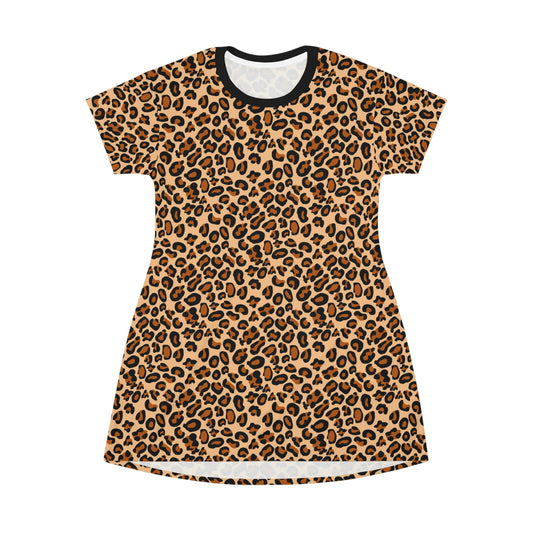 Leopard Tshirt Dress, Animal Print Cheetah Women Summer Beach Cute Festival Party Casual Designer Short Sleeve Girls Tee