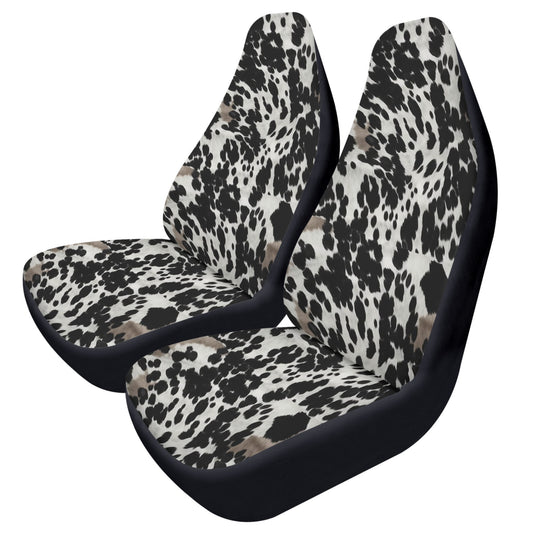 Cow Print Car Seat Covers (2 pcs), Black White Brown Pattern Auto Front Seat Dog Pet Vehicle SUV Universal Protector Accessory Men Women