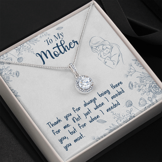 To Mother Crystal Necklace Pendant, Mother's Day Eternal Hope Jewelry Gift for Mum Mom Grandmother Grandma White Gold