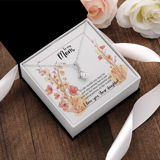 To Mom from Daughter White Gold Pendant Necklace, Mothers Day Alluring Beauty Mum Grandmother Grandma Ribbon Shaped Jewelry Gift Box