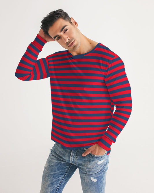 Red and Blue Stripes Men Long Sleeve Tshirt, Striped Unisex Women Designer Graphic Aesthetic Crew Neck Tee