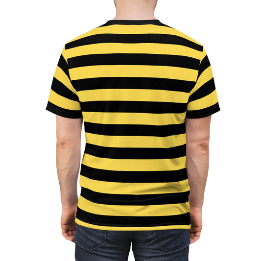 Black and Yellow Striped Men T Shirt, Vintage Wide Horizontal Stripes Lightweight Heavyweight Adult Unisex Male Designer Crewneck Guys Tee