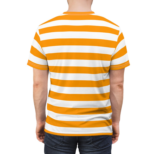 Orange and White Striped Tshirt, Horizontal Bold Stripes Designer Lightweight Heavyweight Crewneck Men Women Tee Top Short Sleeve Shirt