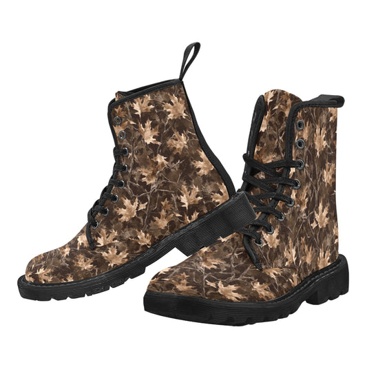Brown Camo Women's Boots, Realistic Fall Autumn Camouflage Fatigue Vegan Canvas Lace Up Ladies Shoes Black Army Print Ankle Combat Casual