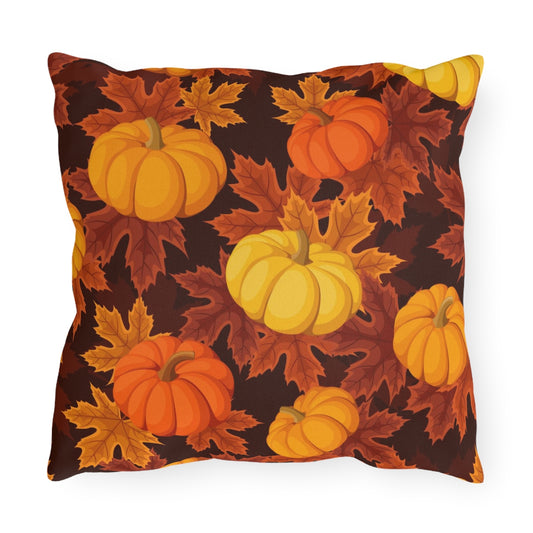 Fall Autumn Outdoor Pillow Filled with Insert, Pumpkins Thanksgiving Leafs Decor Square Throw Decorative Farmhouse Patio Porch Cushion