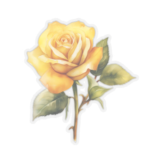 Yellow Rose Sticker Decal, Floral Flower Watercolor Art Vinyl Laptop Waterbottle Tumbler Car Waterproof Bumper Clear Aesthetic Wall
