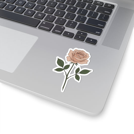 Minimalist Pink Rose Sticker Decal, Single Flower Stem Art Vinyl Laptop Cute Waterbottle Tumbler Car Waterproof Bumper Clear Die Cut Wall