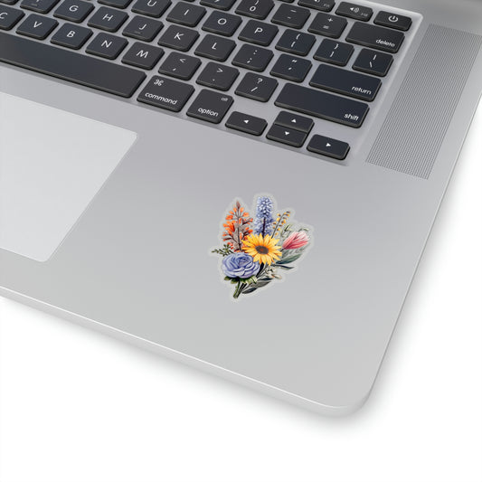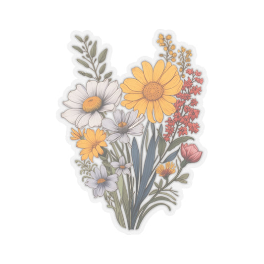 Wildflowers Sticker, Floral Bouquet Art Laptop Decal Vinyl Cute Waterbottle Tumbler Car Waterproof Bumper Aesthetic Die Cut Wall Clear