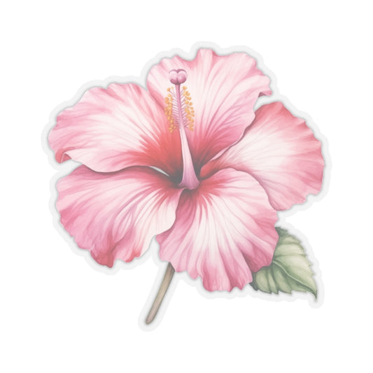 Pink Hibiscus Sticker Decal, Tropical Hawaiian Flower Art Vinyl Laptop Waterbottle Tumbler Car Waterproof Bumper Clear Aesthetic Wall