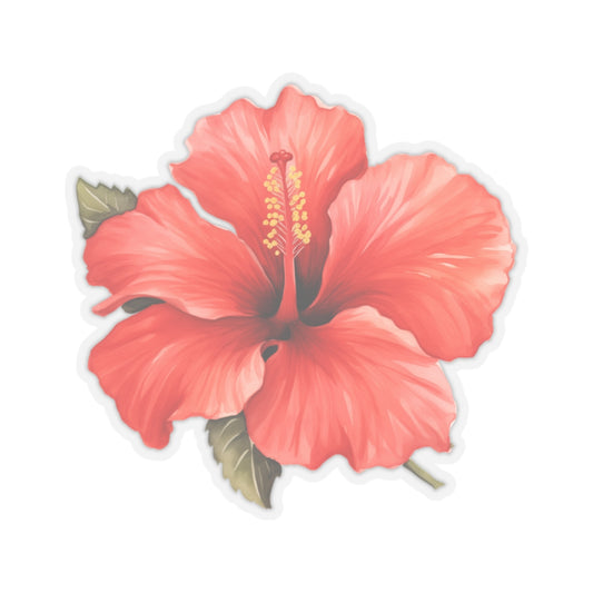 Red Hibiscus Sticker Decal, Tropical Hawaiian Flower Art Vinyl Laptop Waterbottle Tumbler Car Waterproof Bumper Clear Aesthetic Wall