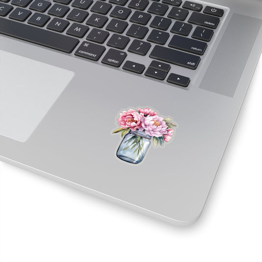 Mason Jar Peonies Sticker, Flowers Floral Art Laptop Decal Vinyl Cute Waterbottle Tumbler Car Waterproof Bumper Die Cut Wall Clear