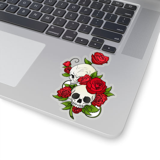 Skull Roses Sticker, Red Gothic Skeleton Tattoo Laptop Decal Vinyl Cute Waterbottle Tumbler Car Waterproof Bumper Aesthetic Die Cut