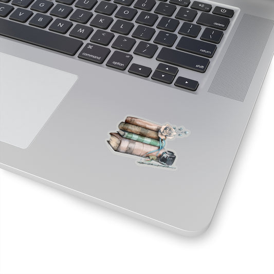 Cat on Books Sticker, Kitten Floral Flowers Reading Art Laptop Decal Vinyl Cute Waterbottle Tumbler Car Waterproof Wall Clear