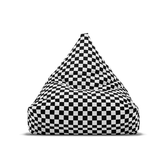 Black White Checkered Bean Bag Chair Cover, Check Furniture Triangle Small Large Adult Kids Sofa Apartment Removable Washable Dorm Decor