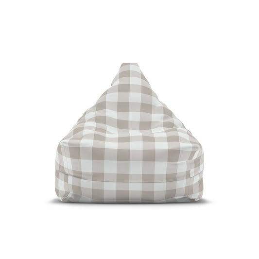Buffalo Check White Bean Bag Chair Cover, Beige Grey Plaid Print Washable Furniture Small Large Adult Kids Sofa Apartment Dorm Unfilled Sack