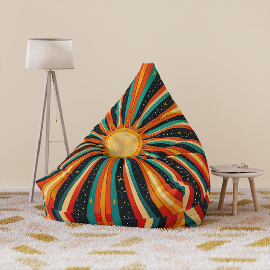 Retro Sunburst Bean Bag Chair Cover, Stars Groovy 70s Sun Rays Boho Washable Furniture Small Large Adult Kids Sofa Apartment Dorm Unfilled