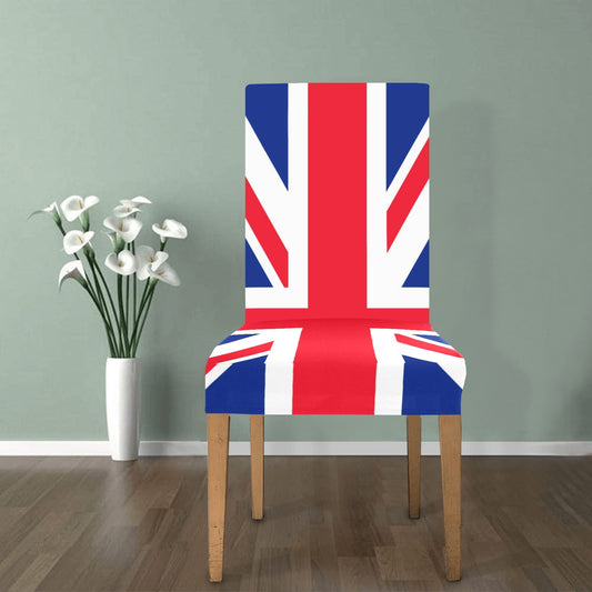 Union Jack Flag Dining Chair Seat Covers, United Kingdom UK Red White Blue British Stretch Slipcover Furniture Dining Room Home Decor