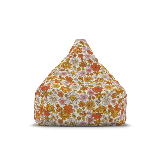 Retro Flowers Bean Bag Chair Cover, 70s Furniture Groovy Floral Small Large Adult Kids Sofa Apartment Funky Gift Dorm Decor