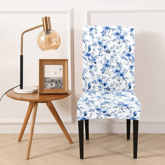 Blue Floral Dining Chair Seat Covers, White Flowers Watercolor Stretch Slipcover Furniture Dining Kitchen Room Stool Home Decor