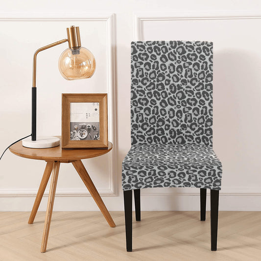 Grey Leopard Dining Chair Seat Covers, Animal Print Cheetah Stretch Slipcover Furniture Dining Room Party Banquet Home Decor
