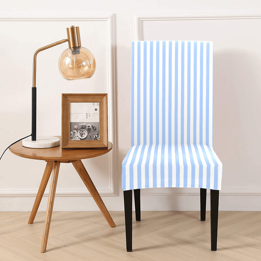 Light Blue Striped Dining Chair Seat Covers, White Stretch Slipcover Furniture Dining Room Party Banquet Home Decor Spandex