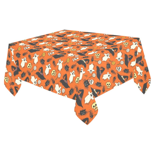 Halloween Tablecloth Cover, Orange Ghosts Scary Fall Autumn Linen Rectangle Home Decor Decoration Cloth Table Dining Room Party