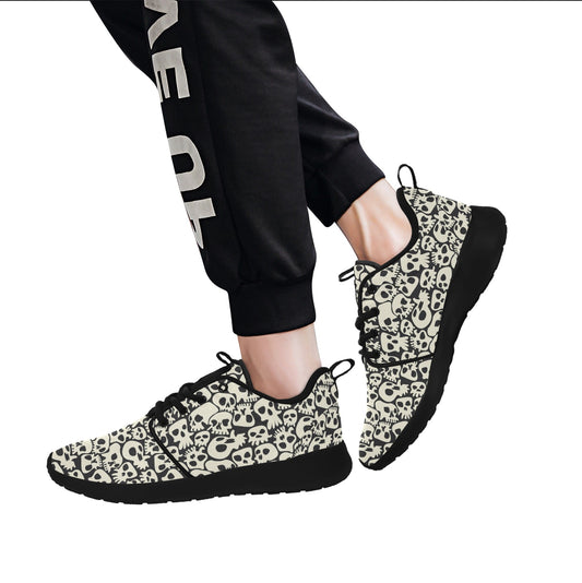 Skull Men Pull Loop Sneaker, Halloween Ghosts Black White Scary Lace Up Athletic Mesh Breathable Print Designer Casual Sport Shoes Trainers