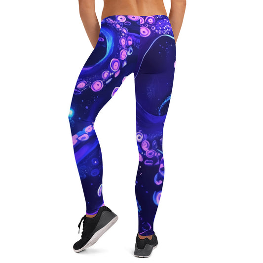 Octopus Tentacles Leggings Women Ladies, Purple Cosplay Halloween Costume Printed Yoga Pants Graphic Workout Running Gym Fun Designer Tights