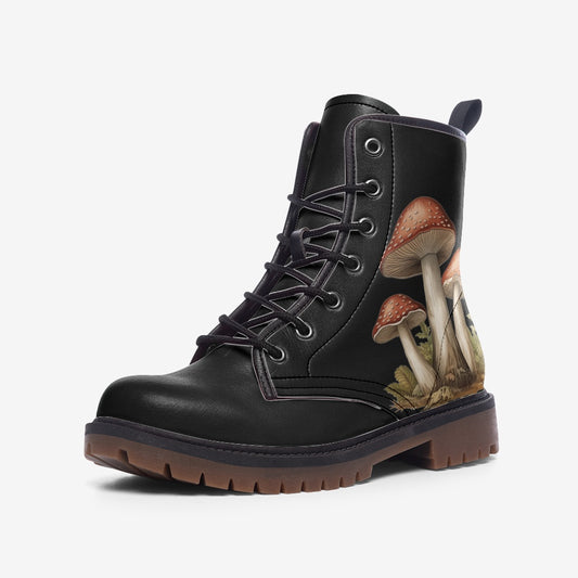 Mushroom Leather Boots, Lace Up Shoes Witchy Hiking Women Men Female Festival Black Ankle Combat Work Winter Casual Custom