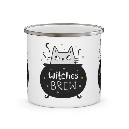 Witches Brew Enamel Camping Mug, Campfire Witch Coffee Gothic Black Cat Stainless Steel Metal Camp Cup Gift
