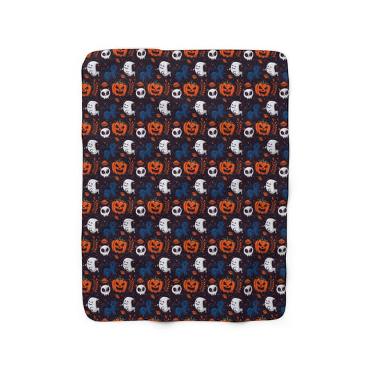 Halloween Sherpa Fleece Blanket, Black Orange Pumpkins Ghosts Spooky Throw Adult Kids Blanket Fall Decor Gift