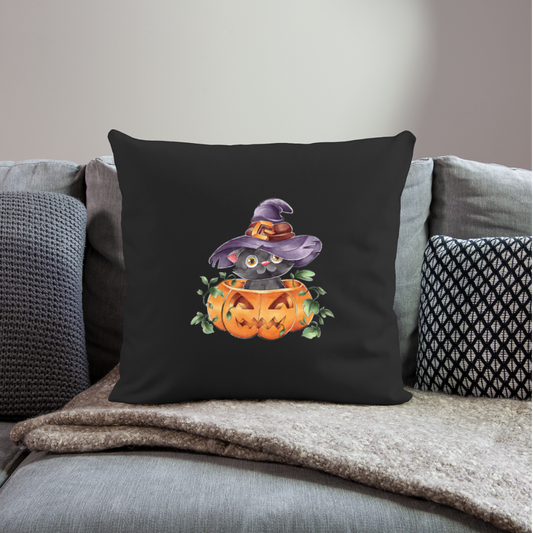 Witch Cat Pumpkin Pillow Cover, Kitten Cute Halloween Fall Autumn Decor Retro Colorful Throw Cotton Cushion Cover 18” x 18”