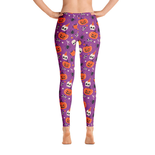 Halloween Leggings Women, Purple Pumpkins Skull Witch Spider Goth Printed Yoga Pants Graphic Fun Designer Tights Gift