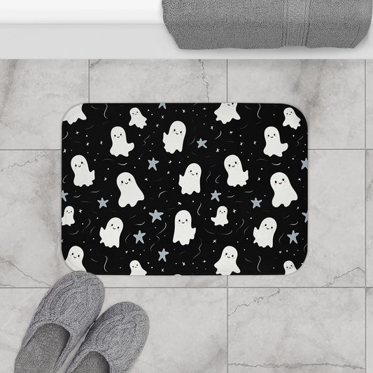 Cute Baby Ghosts Bath Mat, Halloween Black White Fall Memory Foam Shower Bathroom Decor Non Slip Floor Large Small Washable Rug