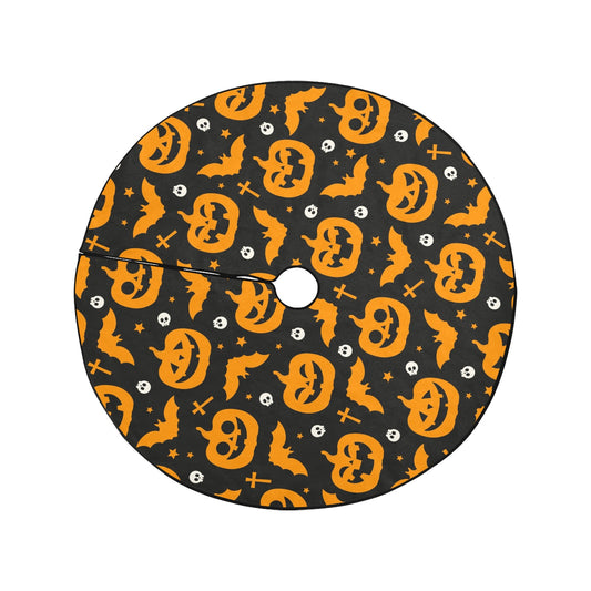 Scary Pumpkins Halloween Tree Skirt, Orange Bats Skulls Christmas Small Large Cover Decor Decoration All Hallows Eve Creepy Spooky Party