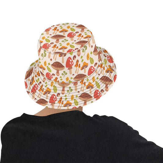 Mushroom Bucket Hat, Forest Retro Vintage Festival Cute Cottagecore Women Men Reversible Designer Beach Sun Shade Y2K Cotton Twill