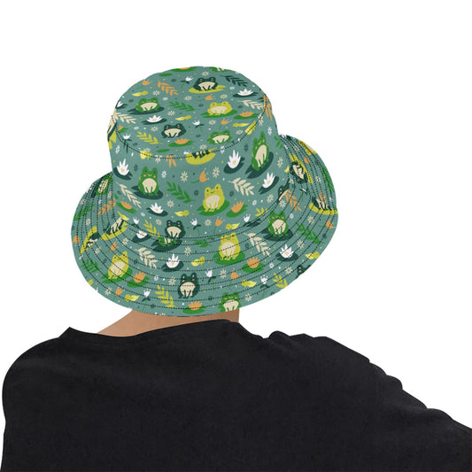 Frog Bucket Hat, Retro Vintage Green Animal Summer Festival Cute Women Men Designer Beach Sun Shade Y2K Cotton Twill