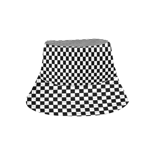 Checkered Bucket Hat Cap, Black White Racing Check Retro Vintage Summer Festival Cute Women Men Designer Beach Sun Shade Y2K Golf Streetwear