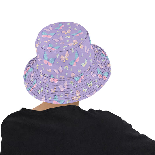 Butterfly Bucket Hat, Monarch Retro Vintage Purple Pink Animal Summer Festival Cute Women Men Designer Beach Sun Shade Y2K Cotton Twill