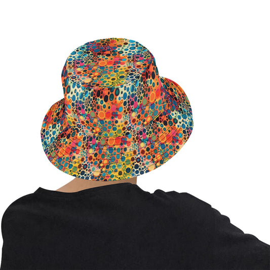 Funky Bucket Hat Cap, Groovy Dots Psychedelic Retro Vintage Disco Summer Festival Cute Women Ladies Men Designer Beach Sun Shade Y2K Golf