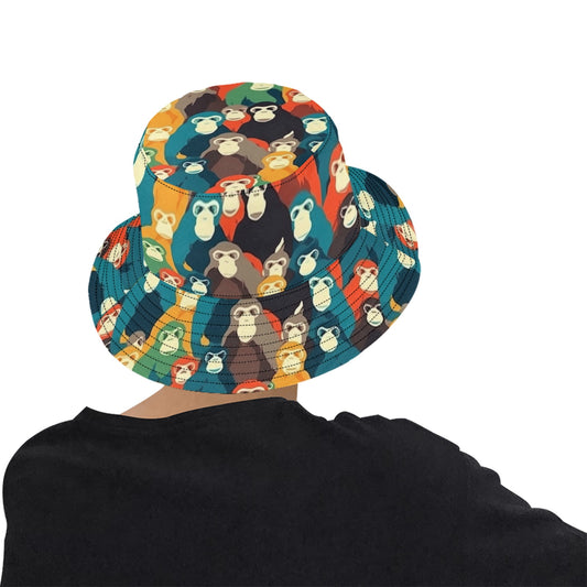 Monkey Bucket Hat, Golf Cool Retro Vintage Animal Summer Festival Cute Women Men Designer Beach Sun Shade Y2K Twill